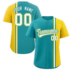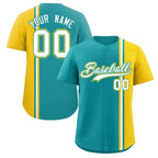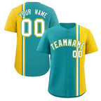 Custom Aqua Gold-White Personalized Color Block Authentic Baseball jersey